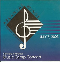 The Arkansas Winds and Ozark Mountains British Brass Band combined forces to present a concert to over a 1,000 music camp attendees. The Winds were conducted by Michael Ferguson and the OMBBB was conducted by Pat Ellison. Both groups were also excited to have Stephen Bulla, http://www.bullamusic.com/bio/bio.html, in town who conducted both groups on his own compositions.